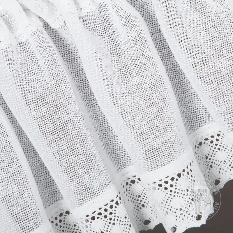 Záclona v bielej farbe z husto tkanej nepriehľadnej tkaniny sa ľahko udržiava a žehlí. Praktický tunel v hornom okraji závesu, uľahčuje jeho prevlečenie cez záclonovú tyč. Vďaka rustikálnemu charakteru záclony je vhodná do štylizovanej kuchyne.