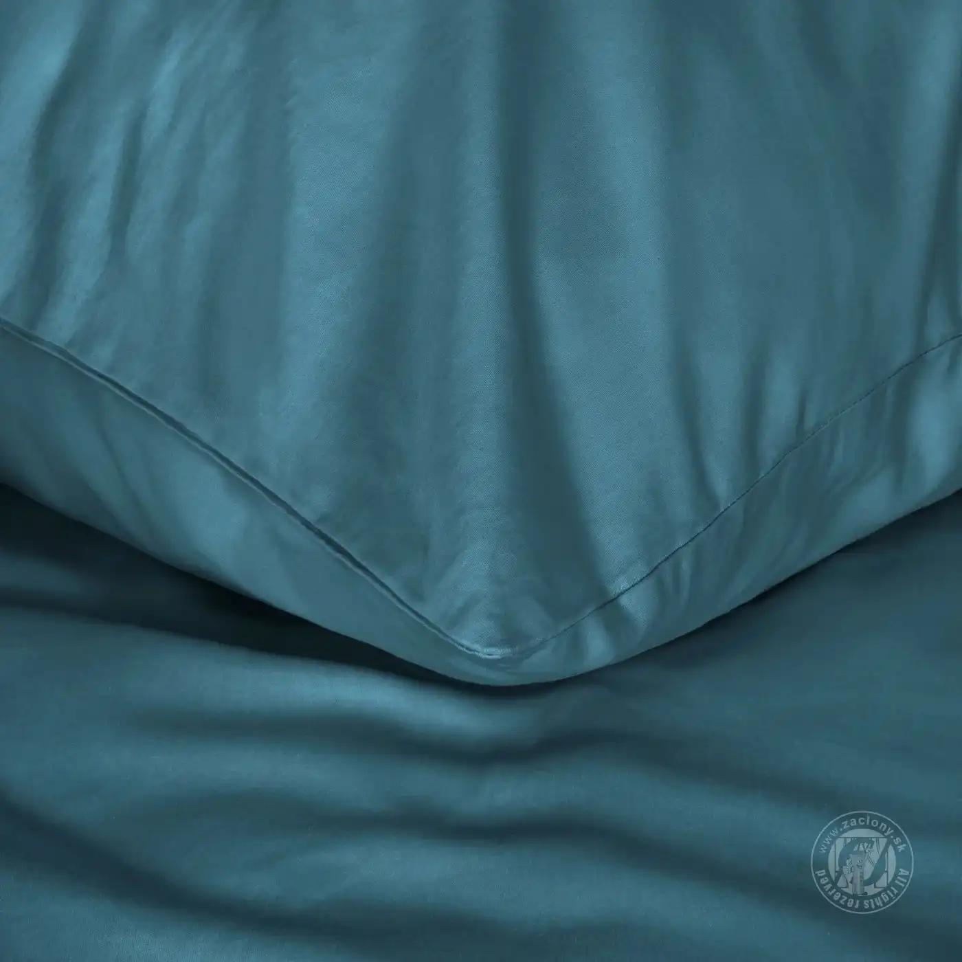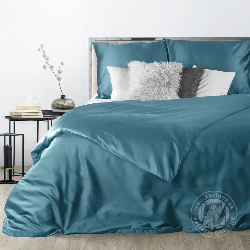 Tyrkysová posteľná bielizeň vyrobená z bavlneného saténu s prirodzeným leskom. Bavlnený satén je tkanina s charakteristickou väzbou, vďaka ktorej získava posteľná bielizeň jemný lesk a hodvábnu jemnosť. Okrem toho bavlnený satén poskytuje v lete pocit chladu a v zime príjemný tepelný komfort.