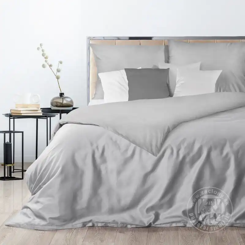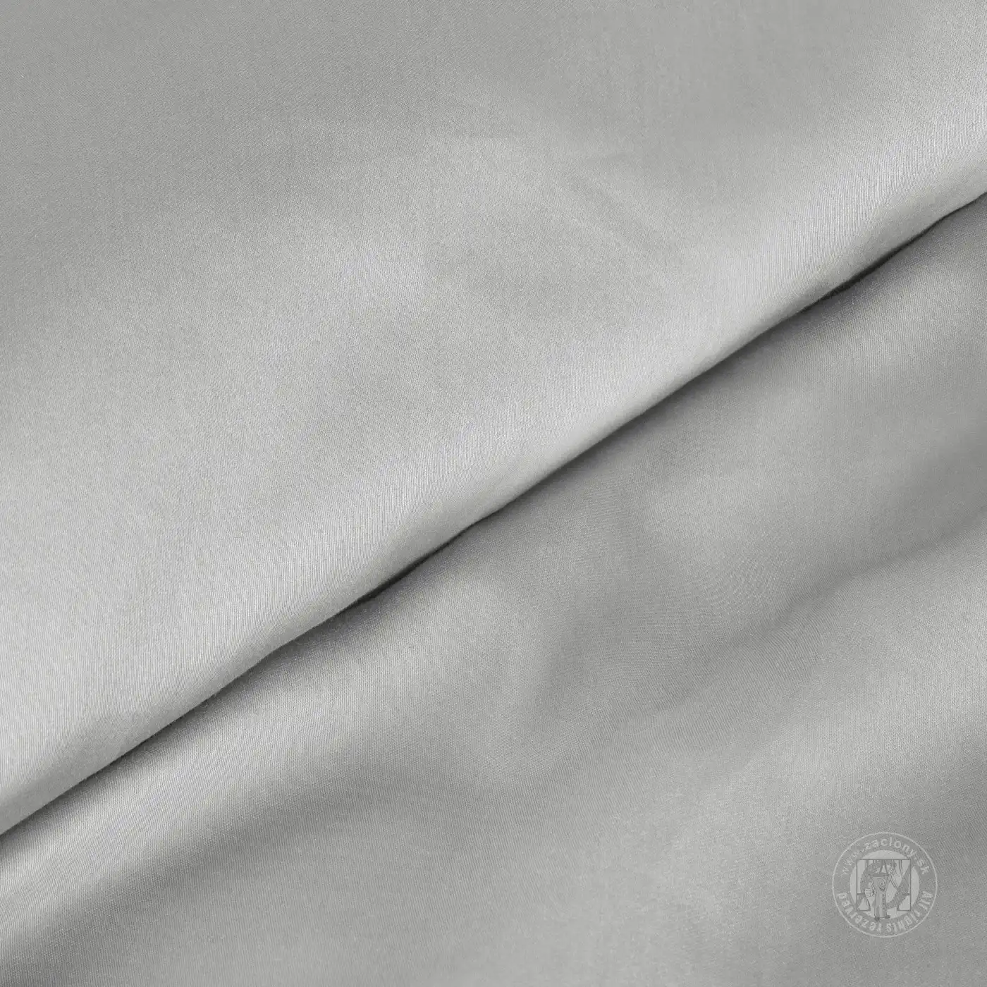 Svetlosivá posteľná bielizeň vyrobená z bavlneného saténu s prirodzeným leskom. Bavlnený satén je tkanina s charakteristickou väzbou, vďaka ktorej získava posteľná bielizeň jemný lesk a hodvábnu jemnosť. Okrem toho bavlnený satén poskytuje v lete pocit chladu a v zime príjemný tepelný komfort.