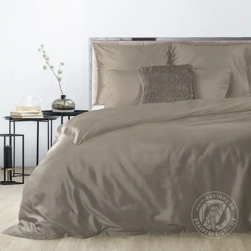 Kávová posteľná bielizeň vyrobená z bavlneného saténu s prirodzeným leskom. Bavlnený satén je tkanina s charakteristickou väzbou, vďaka ktorej získava posteľná bielizeň jemný lesk a hodvábnu jemnosť. Okrem toho bavlnený satén poskytuje v lete pocit chladu a v zime príjemný tepelný komfort.