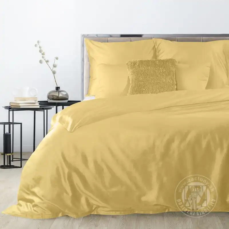 Žltá posteľná bielizeň vyrobená z bavlneného saténu s prirodzeným leskom. Bavlnený satén je tkanina s charakteristickou väzbou, vďaka ktorej získava posteľná bielizeň jemný lesk a hodvábnu jemnosť. Okrem toho bavlnený satén poskytuje v lete pocit chladu a v zime príjemný tepelný komfort.