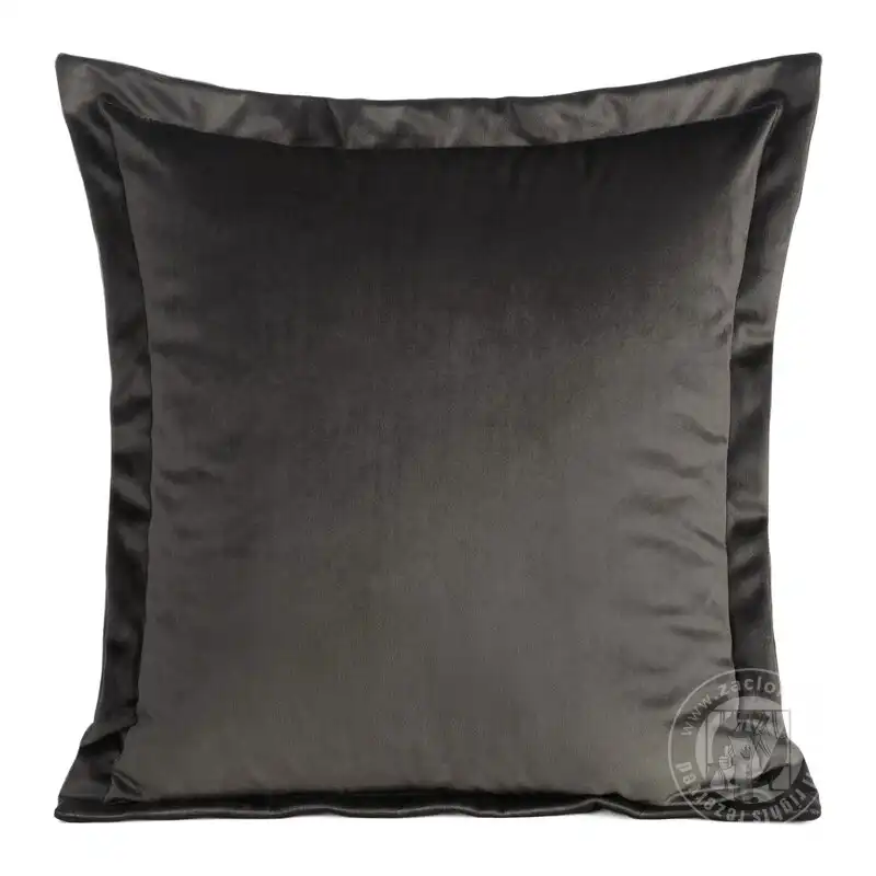 Elegantná tmavosivá obliečka na vankúš vyrobená zo zamatovej látky. Obliečka je lemovaná jednoduchým volánom. Obliečky na vankúše majú zapínanie na zips.