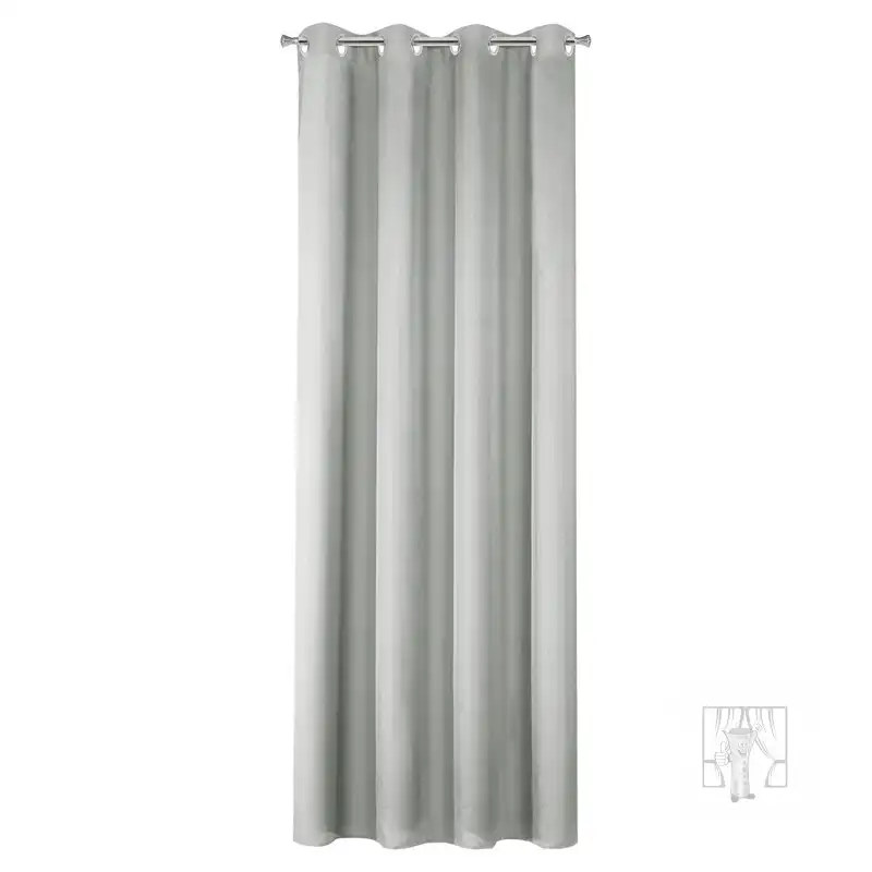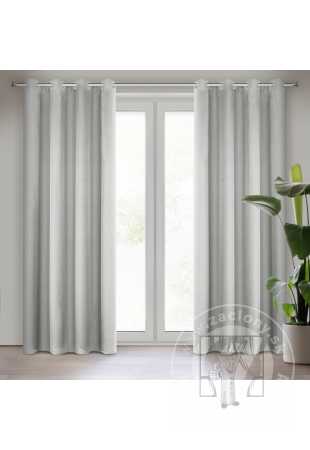 Hotový záves ušitý z hladkej matnej tkaniny v sivom odtieni zútulní priestor a vnesie do interiéru nadčasovosť. Záves je pripevnený pomocou kovových priechodiek, ktoré zabezpečujú rýchlu a bezproblémovú výmenu okennej dekorácie.