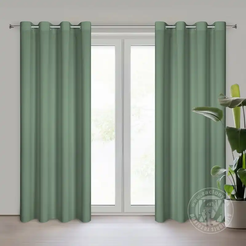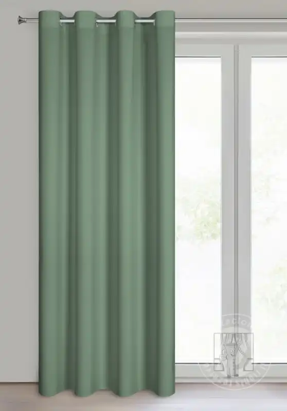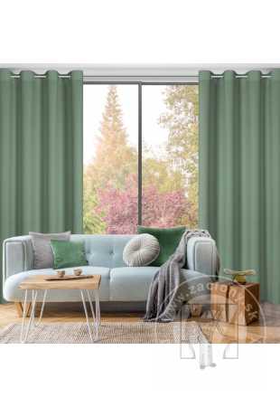 Hotový záves ušitý z hladkej matnej tkaniny v mätovom odtieni zútulní priestor a vnesie do interiéru nadčasovosť. Záves je pripevnený pomocou kovových priechodiek, ktoré zabezpečujú rýchlu a bezproblémovú výmenu okennej dekorácie.