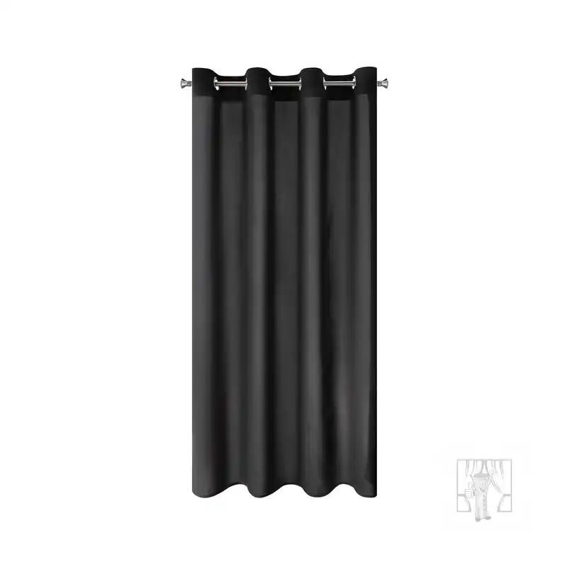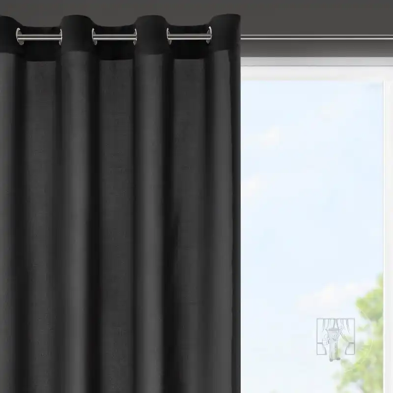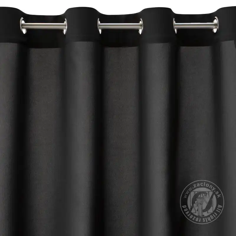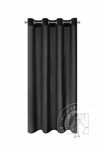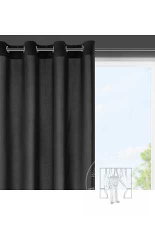 Hotový záves ušitý z hladkej matnej tkaniny v čiernej farbe zútulní priestor a vnesie do interiéru nadčasovosť. Záves je pripevnený pomocou kovových priechodiek, ktoré zabezpečujú rýchlu a bezproblémovú výmenu okennej dekorácie.