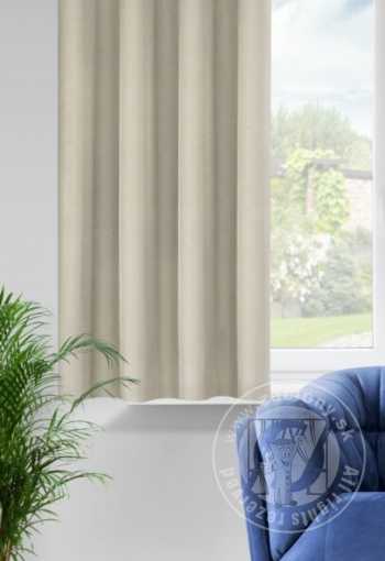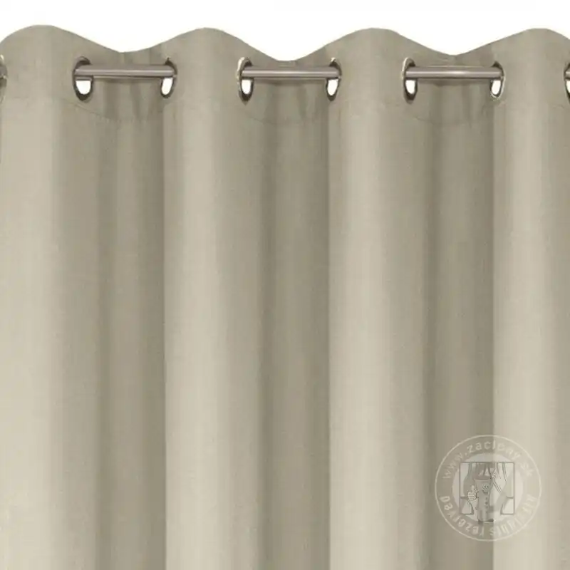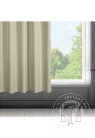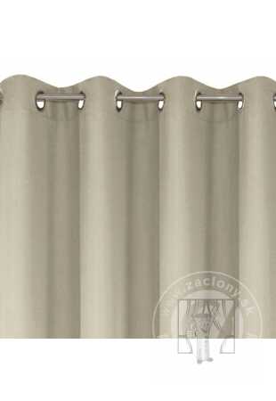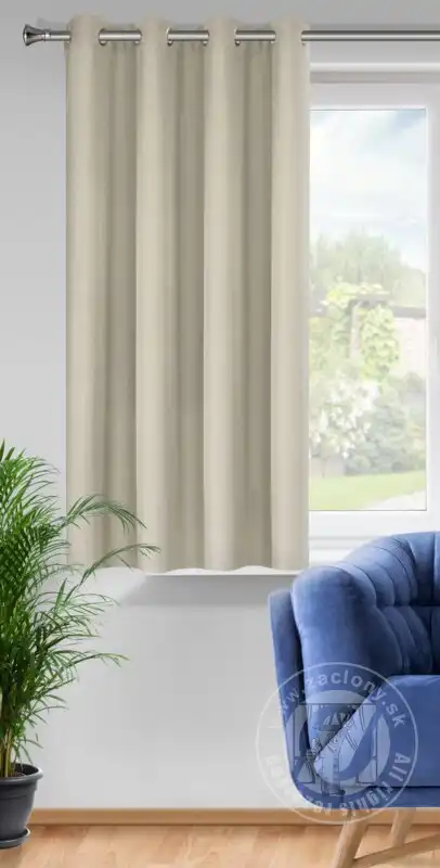 Hotový záves ušitý z hladkej matnej tkaniny béžovej farbe zútulní priestor a vnesie do interiéru nadčasovosť. Záves je pripevnený pomocou kovových priechodiek, ktoré zabezpečujú rýchlu a bezproblémovú výmenu okennej dekorácie.