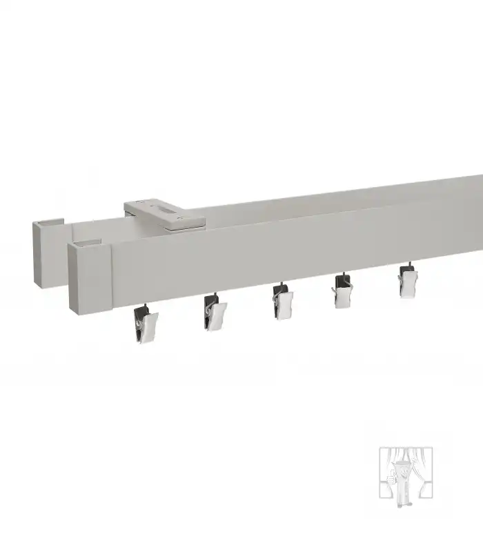 Držiak je zvrchu garniže, vďaka čomu neprekáža pri pohybe štipcov alebo háčikov po celej dĺžke. Garnižu podľa potreby montujete do stropu alebo do steny.