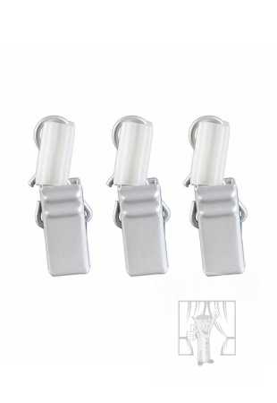 Exkluzívna celokovová garniža v striebornej farbe s vysokokvalitnou úpravou. Tyč - typu koľajnice, vo vnútri ktorej sa pohybujú háčiky alebo štipce.