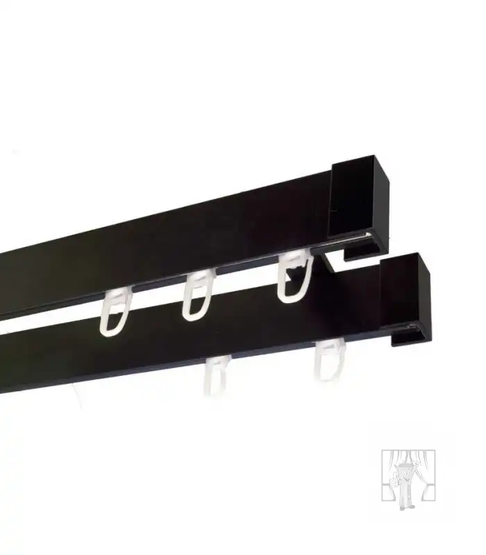 Exkluzívna celokovová garniža v čiernej farbe s vysokokvalitnou úpravou. Tyč - typu koľajnice, vo vnútri ktorej sa pohybujú háčiky alebo štipce.