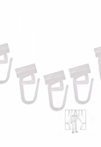 - biele plastové háčiky pre uchytenie záclon a závesov s riasiacou páskou sú vhodné ko garniže LUXOR