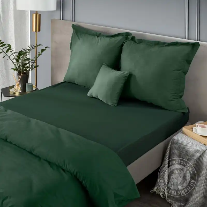 Tmavozelená napínacia plachta z bavlneného saténu poteší hebkým materiálom a kvalitným spracovaním.