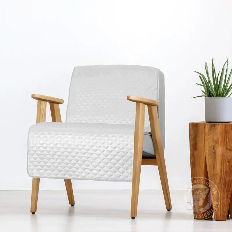 Vrch prehozu je vyrobený z hebkej zamatovej látky s jemným leskom, spodná strana je vyrobené z hladkej látky-matného mikrovlákna, ktoré zabraňuje zošmyknutiu prehozu z kresla.