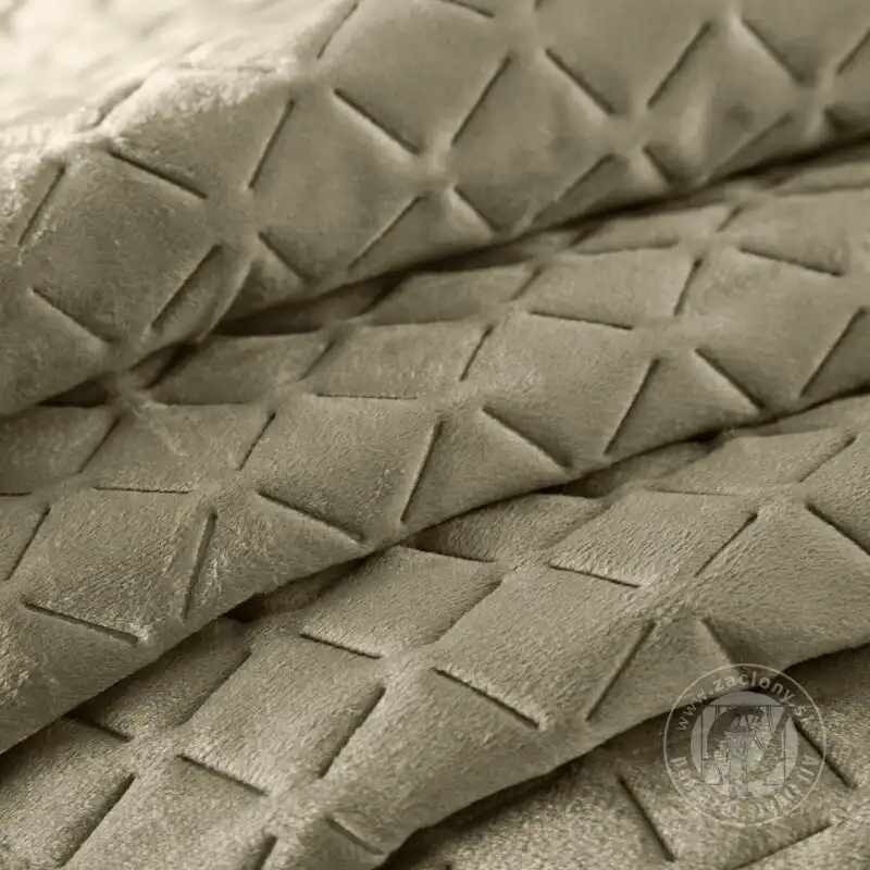 Vrch prehozu je vyrobený z hebkej zamatovej látky s jemným leskom, spodná strana je vyrobené z hladkej látky-matného mikrovlákna, ktoré zabraňuje zošmyknutiu prehozu z posteľnej bielizne.