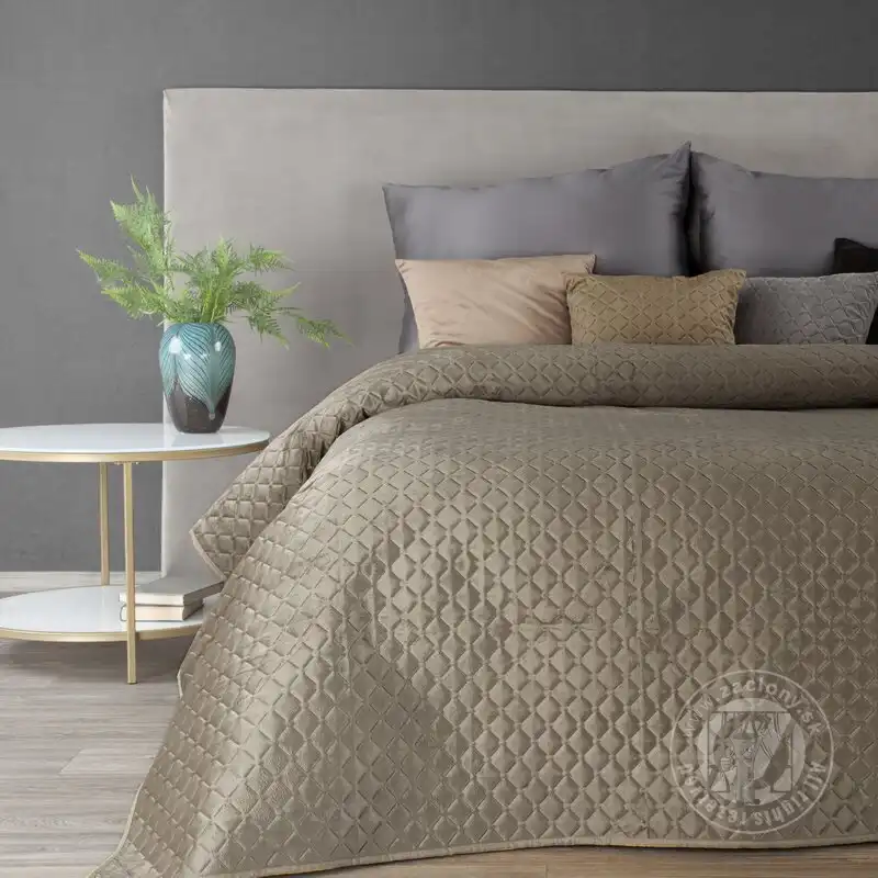 Zamatový prehoz na posteľ DIMON 200x220 cm tmavobéžový
