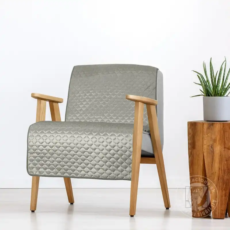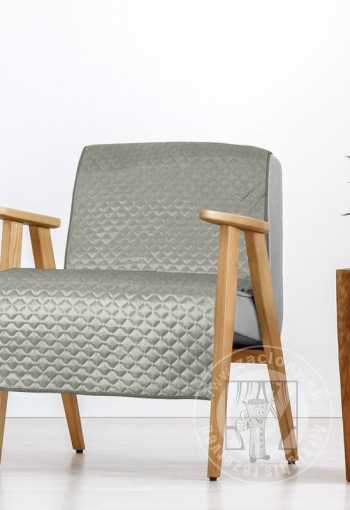 Vrch prehozu je vyrobený z hebkej zamatovej látky s jemným leskom, spodná strana je vyrobené z hladkej látky-matného mikrovlákna, ktoré zabraňuje zošmyknutiu prehozu z kresla.