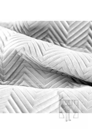 Spodná aj vrchná strana sú prešívané bezšvíkovou metódou lisovania za tepla (hot press) v geometrickom vzore rybej kosti. Prešívanie hot press zvyšuje pevnosť materiálu a zaisťuje trvanlivosť produktu. Nadýchaná výplň medzi vrstvami materiálu robí prehoz pružným, vďaka čomu sa prehoz pekne prispôsobí posteli. Okraj prehozu je ukončený estetickým lemovaním.
