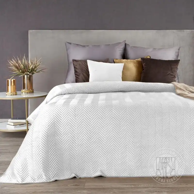 Zamatový prehoz na posteľ SOFIA 200x220 cm biely