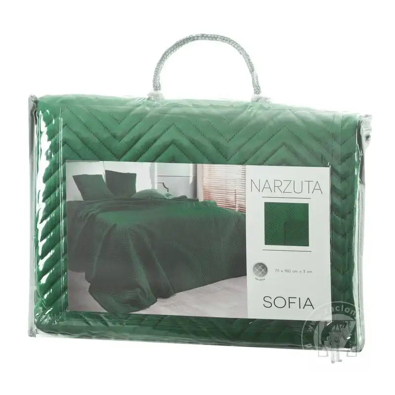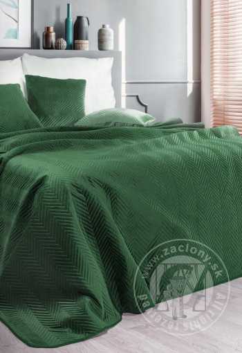 Zamatový prehoz na posteľ SOFIA 200x220 cm tmavozelený