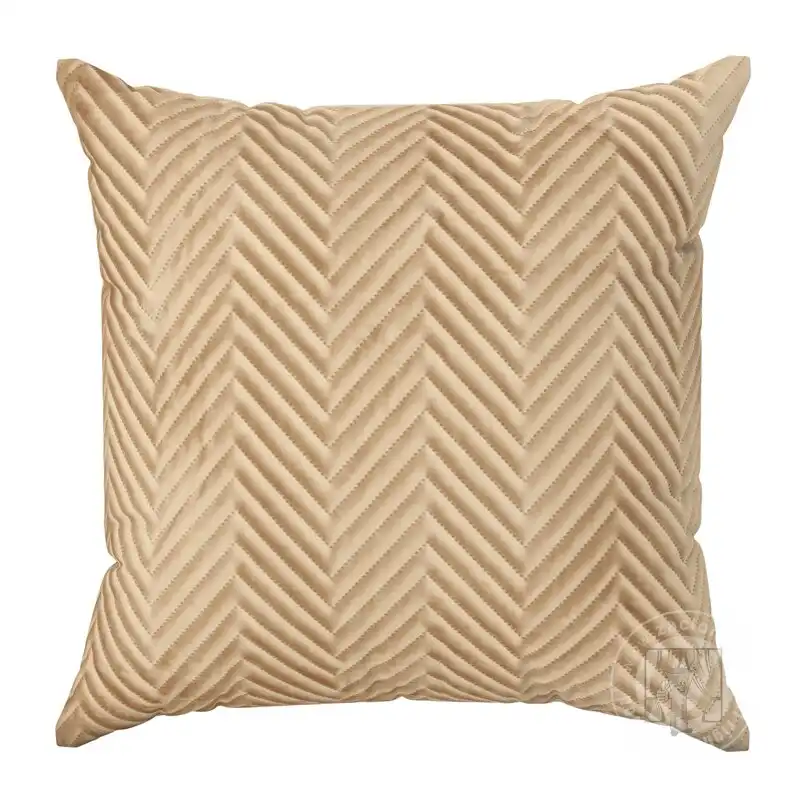Mäkká a na dotyk príjemná zamatová obliečka na vankúš v medovej farbe bezšvovo prešívaná s geometrickým vzorom rybej kosti, bude skvelým doplnkom vašej spálne. Zips všitý na jednej strane uľahčuje zmenu dekorácie.