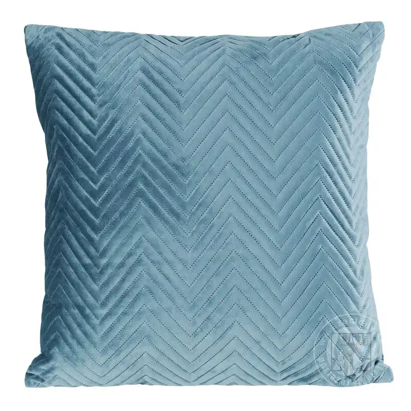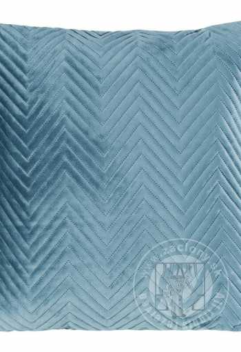 Mäkká a na dotyk príjemná zamatová obliečka na vankúš v modrej farbe bezšvovo prešívaná s geometrickým vzorom rybej kosti, bude skvelým doplnkom vašej spálne. Zips všitý na jednej strane uľahčuje zmenu dekorácie.