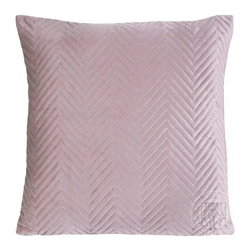 Mäkká a na dotyk príjemná zamatová obliečka na vankúš v ružovej farbe bezšvovo prešívaná s geometrickým vzorom rybej kosti, bude skvelým doplnkom vašej spálne. Zips všitý na jednej strane uľahčuje zmenu dekorácie.