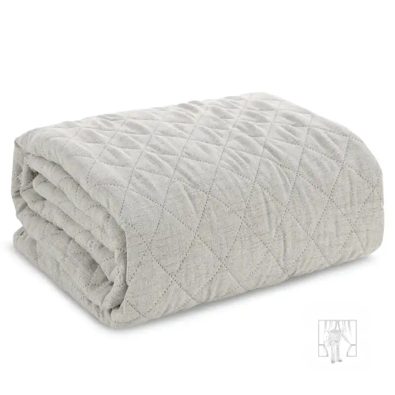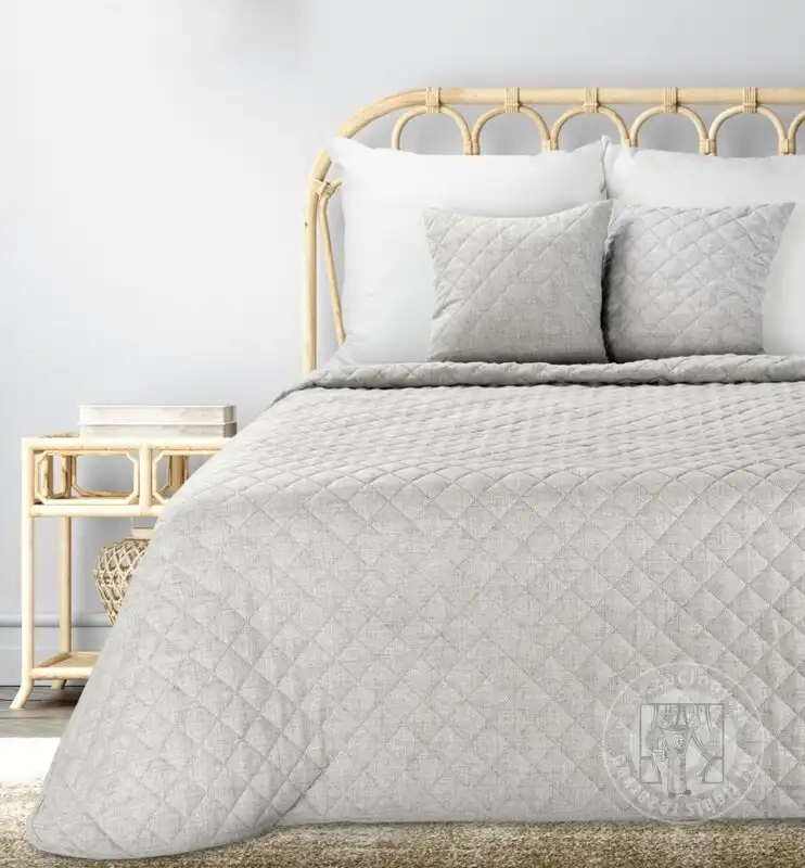 S ohľadom na moderné a štýlové spálne sme pripravili kolekciu jednofarebných prehozov z látky imitujúcej prírodný ľan. Štýlový prešívaný prehoz na posteľ s geometrickým kosoštvorcovým vzorom dodá spálni moderný nádych. Vďaka vrstve pružnej výplne prehoz mäkko obopína posteľ, vďaka čomu spálňa pôsobí esteticky a módne. Moderný spôsob prešívania bez nití (hotpress) zvyšuje odolnosť materiálu, čím prehoz získava dlhšiu životnosť. Mäkká a na dotyk príjemná spodná časť prehozu z mikrovlákna zabezpečuje, že prehoz priľne k posteľnej bielizni a vždy zostane na svojom mieste.