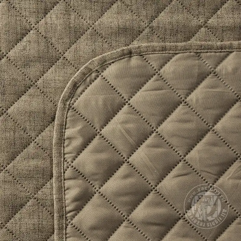 S ohľadom na moderné a štýlové spálne sme pripravili kolekciu jednofarebných prehozov z látky imitujúcej prírodný ľan. Štýlový prešívaný prehoz na posteľ s geometrickým kosoštvorcovým vzorom dodá spálni moderný nádych. Vďaka vrstve pružnej výplne prehoz mäkko obopína posteľ, vďaka čomu spálňa pôsobí esteticky a módne. Moderný spôsob prešívania bez nití (hotpress) zvyšuje odolnosť materiálu, čím prehoz získava dlhšiu životnosť. Mäkká a na dotyk príjemná spodná časť prehozu z mikrovlákna zabezpečuje, že prehoz priľne k posteľnej bielizni a vždy zostane na svojom mieste.
