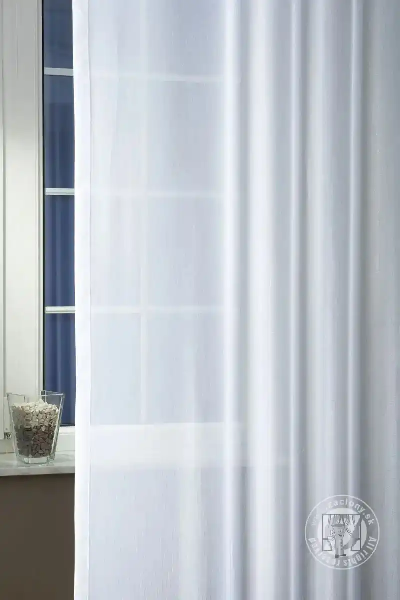 POZOR: na niektorých fotkách a videu môže mať záclona mierne žltkavý nádych. V skutočnosti ide o čisto snehobielu záclonu bez akéhokoľvek nádychu béžovej alebo žltej. Takéto farebné odchylky môžu byť spôsobené nastavením monitora alebo zlým osvetlením pri fotení.