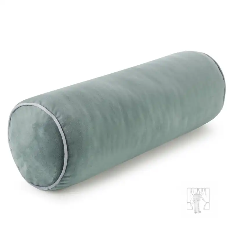 Elegantný tmavý mätový vankúš s výplňou v tvare valca je vyrobený z mäkkej zamatovej tkaniny. Vankúš je zdobený elegantným lemovaním v kontrastnej farbe, ktoré zdôrazňuje jeho jedinečný charakter a dodáva mu rafinovaný štýl.
