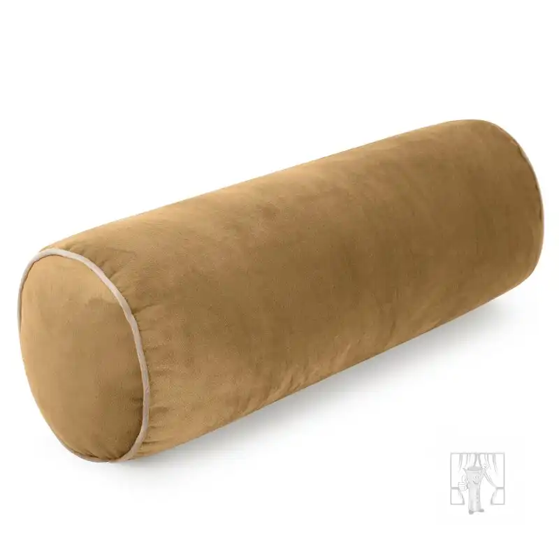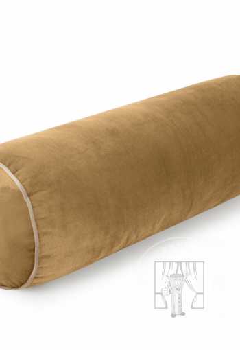 Elegantný medový vankúš s výplňou v tvare valca je vyrobený z mäkkej zamatovej tkaniny. Vankúš je zdobený elegantným lemovaním v kontrastnej farbe, ktoré zdôrazňuje jeho jedinečný charakter a dodáva mu rafinovaný štýl.