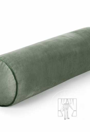 Elegantný olivový vankúš s výplňou v tvare valca je vyrobený z mäkkej zamatovej tkaniny. Vankúš je zdobený elegantným lemovaním v kontrastnej farbe, ktoré zdôrazňuje jeho jedinečný charakter a dodáva mu rafinovaný štýl.