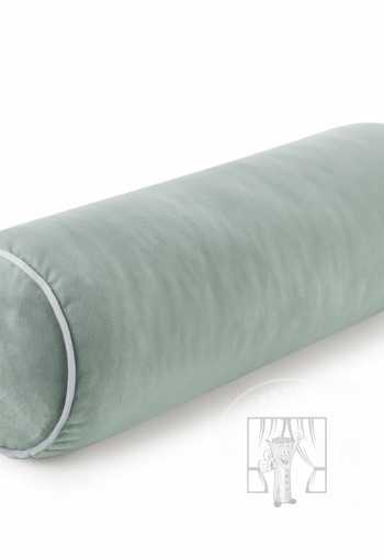 Elegantný mintový vankúš s výplňou v tvare valca je vyrobený z mäkkej zamatovej tkaniny. Vankúš je zdobený elegantným lemovaním v kontrastnej farbe, ktoré zdôrazňuje jeho jedinečný charakter a dodáva mu rafinovaný štýl.