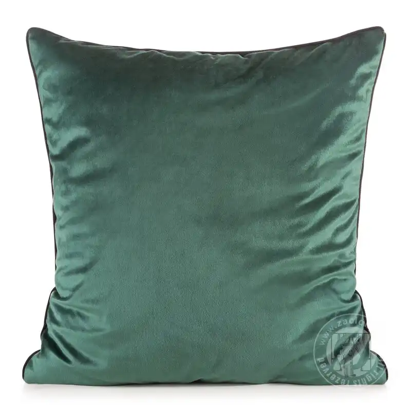 Elegantná tmavozelená obliečka na vankúš vyrobená z mäkkej zamatovej tkaniny. Okraje zdobí kontrastné lemovanie, ktoré celému kusu dodáva štýlový a sofistikovaný vzhľad. Vďaka skrytému zipsu je obliečka na vankúš pohodlná na používanie.