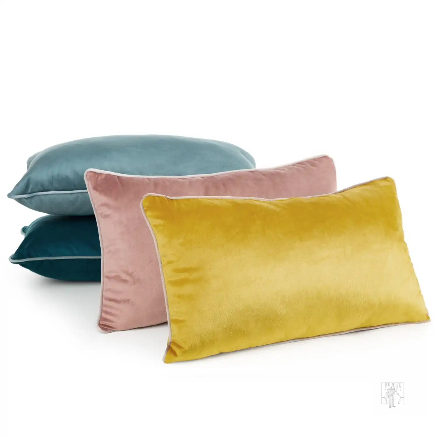 Elegantný zamatový vankúš je zdobený kontrastným lemom. Jemný lesk podčiarkuje jeho jedinečný charakter.