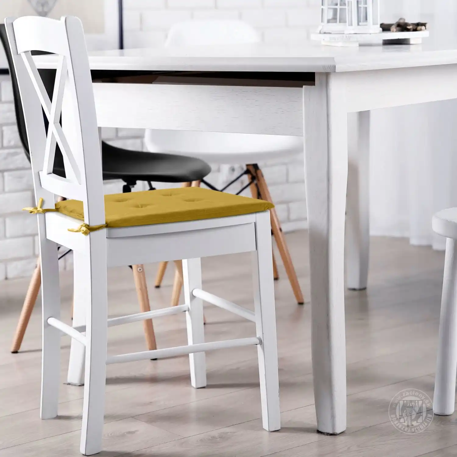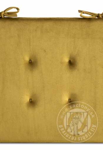 Elegantná žltá poduška na stoličku GAJA spája pohodlie a štýlový dizajn. Je vyrobená zo zamatovej tkaniny s príjemnou gramážou 220 g/m² a poteší svojím jemným leskom a mäkkosťou. Jej elastická výplň poskytuje pohodlné sedenie, zatiaľ čo štyri ozdobné detaily prešívania mu dodávajú elegantný nádych a pomáhajú udržiavať tvar.