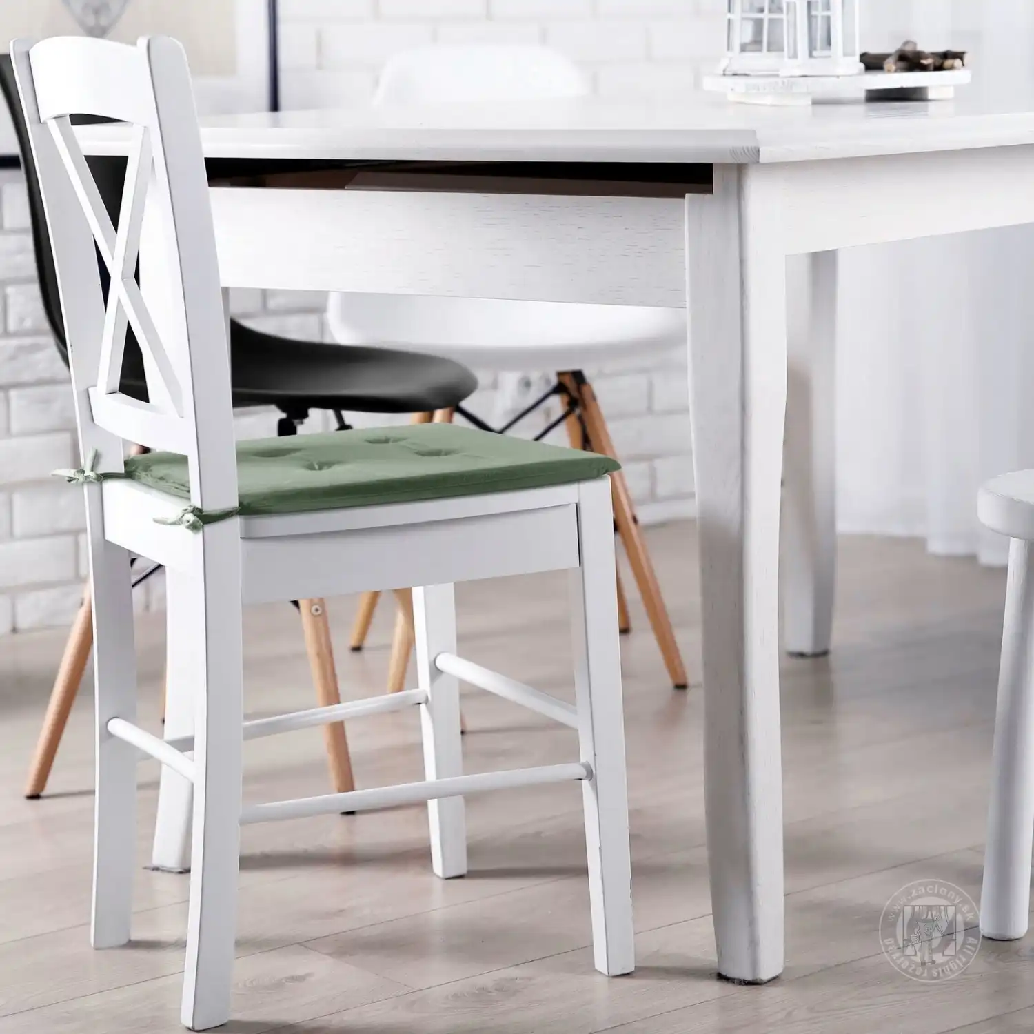 Elegantná zelená poduška na stoličku GAJA spája pohodlie a štýlový dizajn. Je vyrobená zo zamatovej tkaniny s príjemnou gramážou 220 g/m² a poteší svojím jemným leskom a mäkkosťou. Jej elastická výplň poskytuje pohodlné sedenie, zatiaľ čo štyri ozdobné detaily prešívania mu dodávajú elegantný nádych a pomáhajú udržiavať tvar.