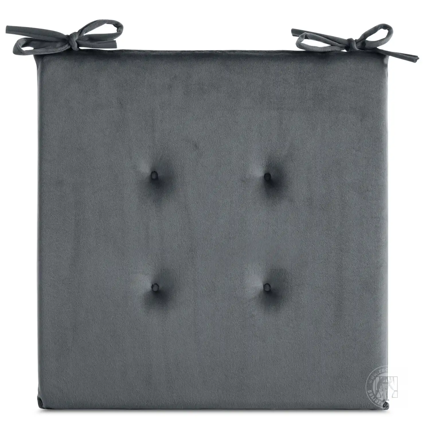 Elegantná tmavosivá poduška na stoličku GAJA spája pohodlie a štýlový dizajn. Je vyrobená zo zamatovej tkaniny s príjemnou gramážou 220 g/m² a poteší svojím jemným leskom a mäkkosťou. Jej elastická výplň poskytuje pohodlné sedenie, zatiaľ čo štyri ozdobné detaily prešívania mu dodávajú elegantný nádych a pomáhajú udržiavať tvar.