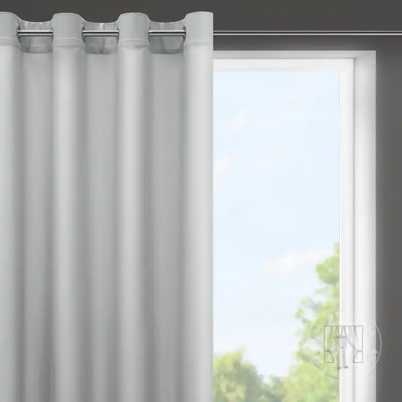 Hotový záves ušitý z hladkej matnej tkaniny tmavosivej farbe zútulní priestor a vnesie do interiéru nadčasovosť. Záves je pripevnený pomocou kovových priechodiek, ktoré zabezpečujú rýchlu a bezproblémovú výmenu okennej dekorácie.