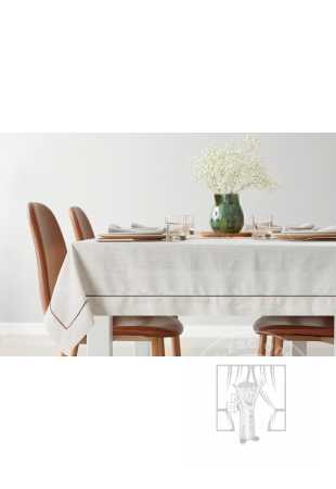 Obrus NATURA z tkaniny s prímesou ľanu je minimalistickou dekoráciou stola. Obrus v prírodnej farbe je zvýraznený dvojitým lemovaním a tmavšou hnedou lemovkou, ktorá vedie po všetkých štyroch okrajoch obrusu.