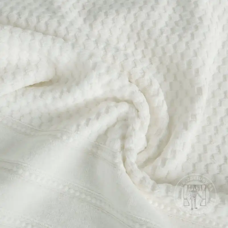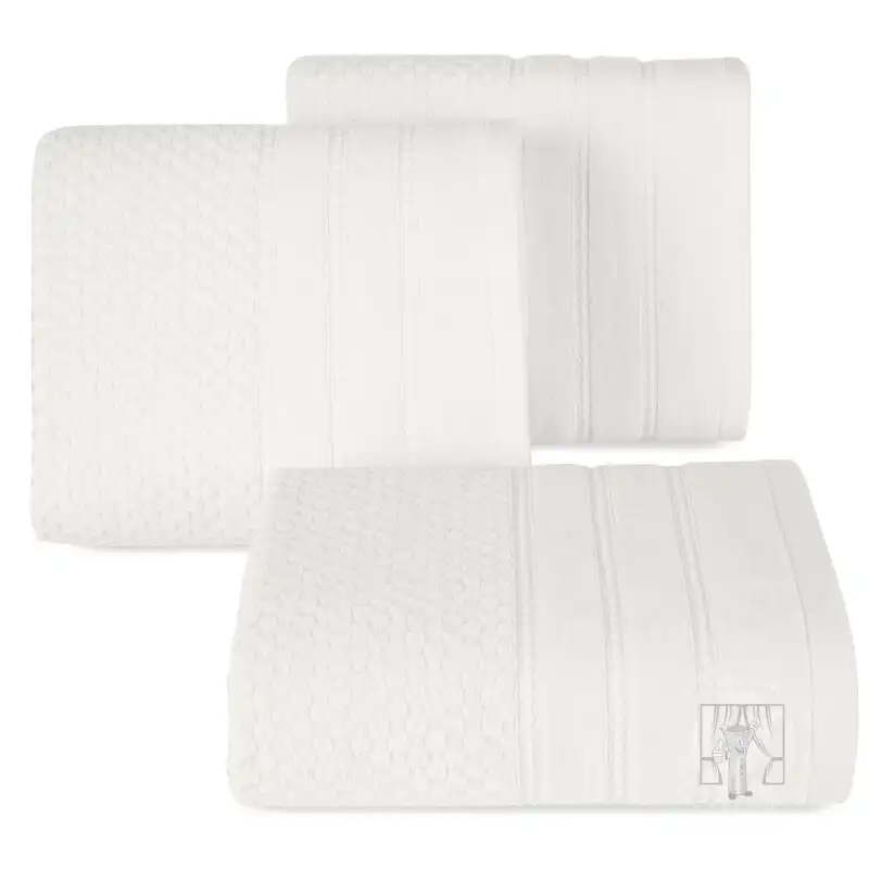 Štýlový bavlnený uterák so štruktúrou, ktorý spája funkčnosť s eleganciou. Je vyrobený z mäkkej a kvalitnej bavlny a vyznačuje sa výnimočnou savosťou a odolnosťou. Jemný vyvýšený mriežkový vzor dodáva uteráku príjemnú štruktúru a zároveň zvyšuje jeho schopnosť rýchlo absorbovať vodu. Spodnú časť uteráka zdobí široký okraj ukončený jemným prešívaním.