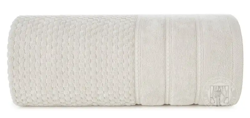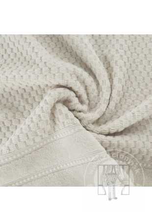 Béžový bavlnený uterák s vysokou gramážou a mriežkovanou štruktúrou pre maximálnu savosť a mäkkosť. Spodný okraj zdobí široký lem s jemným prešívaním. Kvalitný uterák z 100 % bavlny ideálny do každej kúpeľne na pohodlné každodenné používanie.