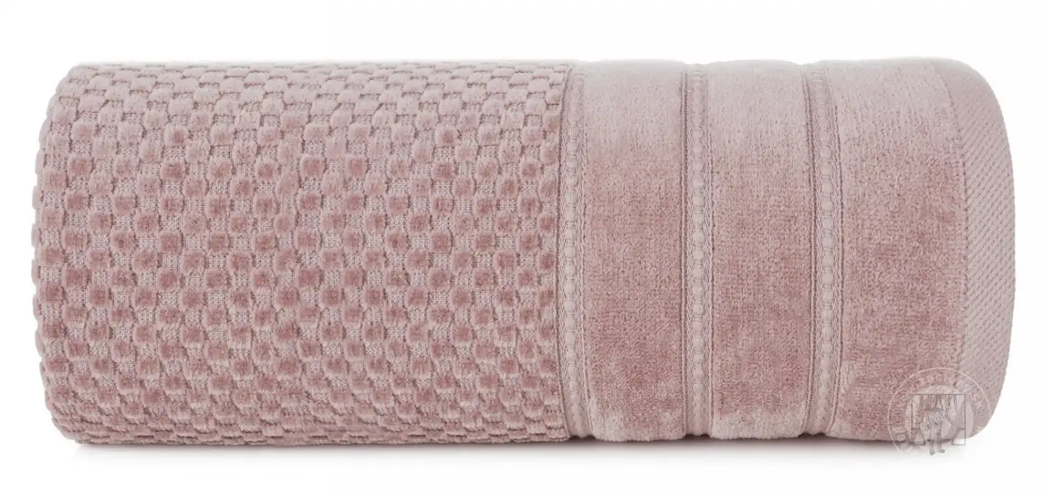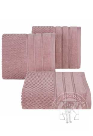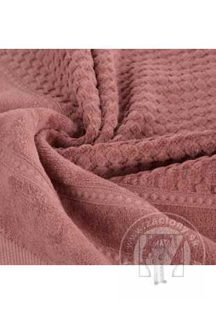 Ružový bavlnený uterák s vysokou gramážou a mriežkovanou štruktúrou pre maximálnu savosť a mäkkosť. Spodný okraj zdobí široký lem s jemným prešívaním. Kvalitný uterák z 100 % bavlny ideálny do každej kúpeľne na pohodlné každodenné používanie.