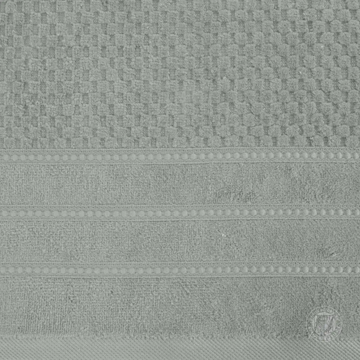 Zelenkavý bavlnený uterák s vysokou gramážou a mriežkovanou štruktúrou pre maximálnu savosť a mäkkosť. Spodný okraj zdobí široký lem s jemným prešívaním. Kvalitný uterák z 100 % bavlny ideálny do každej kúpeľne na pohodlné každodenné používanie.