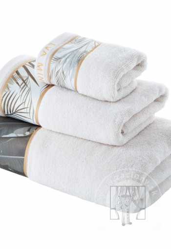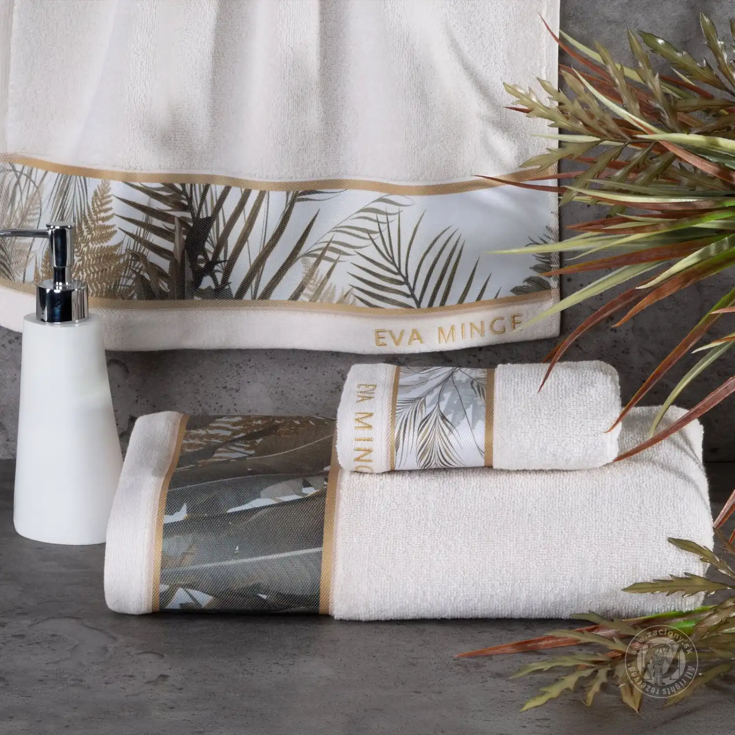 Uterák z exkluzívnej kolekcie EVA MINGE zdobený dizajnérskym lemovaním zvýrazní vašu kúpeľňu.