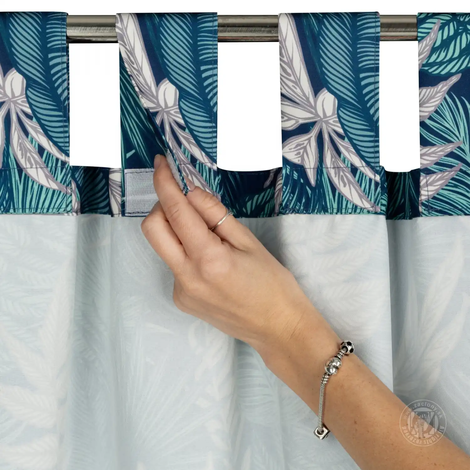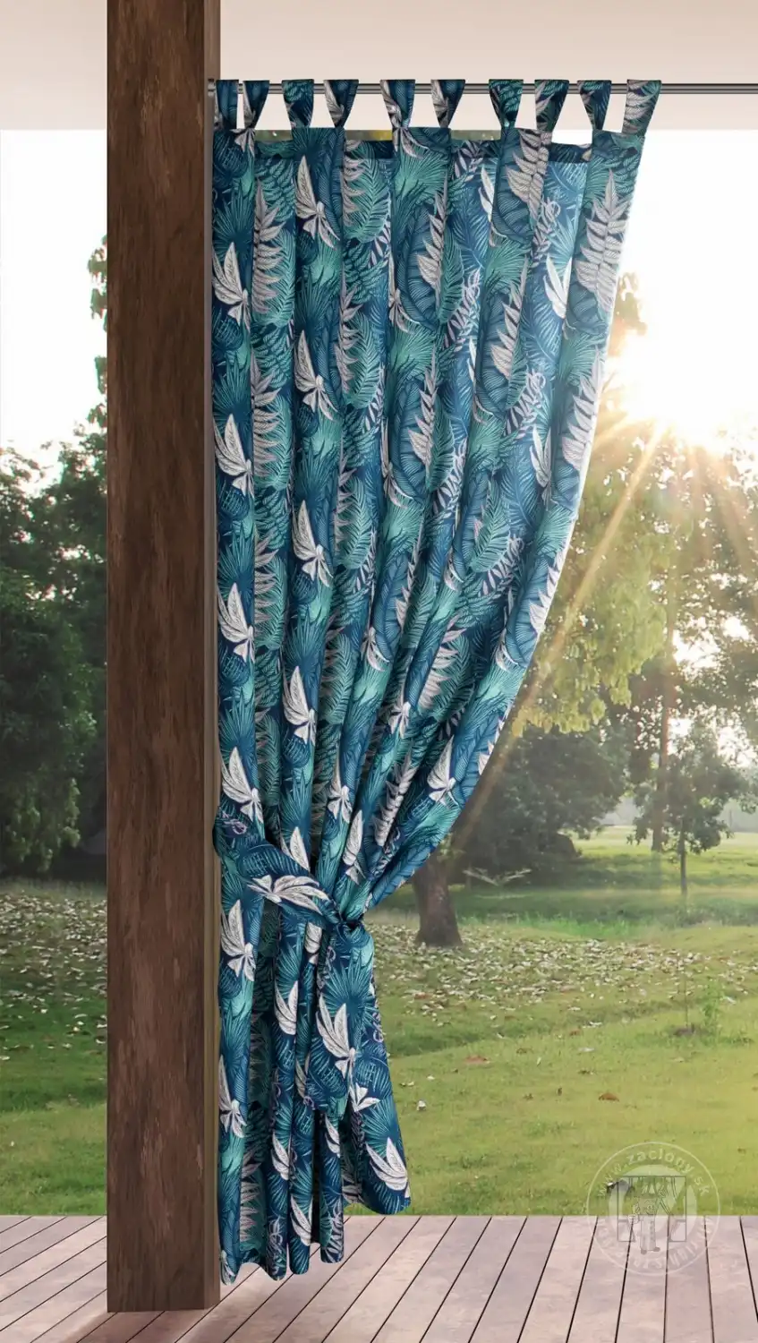 Záves na terasu GARDEN9 na pútkach 155x220 cm modré listy