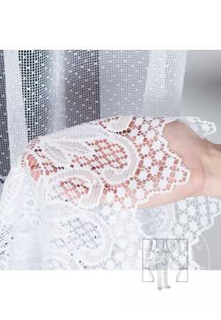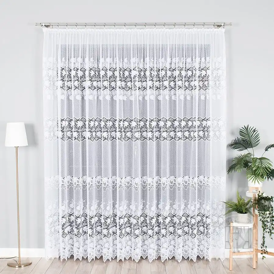 Metrážová záclona vyrobená zo žakaru, ktorá vyniká svojim vzorom ťahajúcim sa pozdĺž celej záclony. Žakárové záclony vyzerajú skvelo v oknách obývačky alebo spálne umiestnenej v dome, byte, či chalupe namä počas jarného alebo letného obdobia. Táto záclona taktiež sĺňa náročné kritériá dnešných trendov interiérovej architektúry. Záclona sa ľahko udržuje, je tvarovo stála a nežltne.