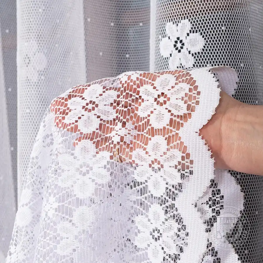 Metrážová záclona vyrobená zo žakaru, ktorá vyniká svojim vzorom ťahajúcim sa pozdĺž celej záclony. Žakárové záclony vyzerajú skvelo v oknách obývačky alebo spálne umiestnenej v dome, byte, či chalupe namä počas jarného alebo letného obdobia. Táto záclona taktiež sĺňa náročné kritériá dnešných trendov interiérovej architektúry. Záclona sa ľahko udržuje, je tvarovo stála a nežltne.