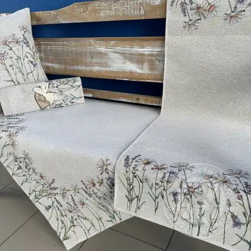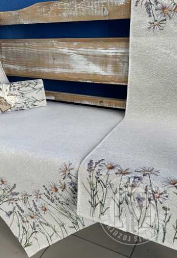 Gobelínové prestieranie na stôl s motívom lúčnych kvetov. Hrubšia tkanina zaručuje krásny efekt a vzor dosiahnutý technikou tkania spôsobuje, že prestieranie vyzerá krásne v interiéri v rustikálnom štýle aj v romantickej štylizácii.