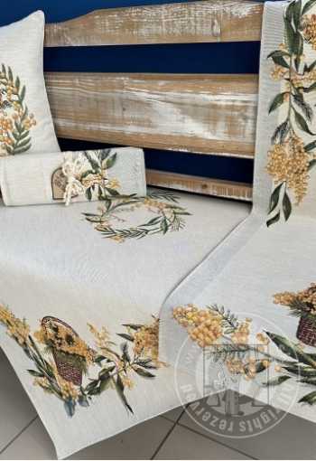 Gobelínový behúň na stôl s motívom lúčnych kvetov. Obrus navrhnutý z hrubej gobelínovej tkaniny zdobený kvetinovým vzorom je dekoráciou pripomínajúcou vintage štýl. Hrubšia tkanina zaručuje krásny efekt a vzor dosiahnutý technikou tkania spôsobuje, že obrus vyzerá krásne v interiéri v rustikálnom štýle aj v romantickej štylizácii.