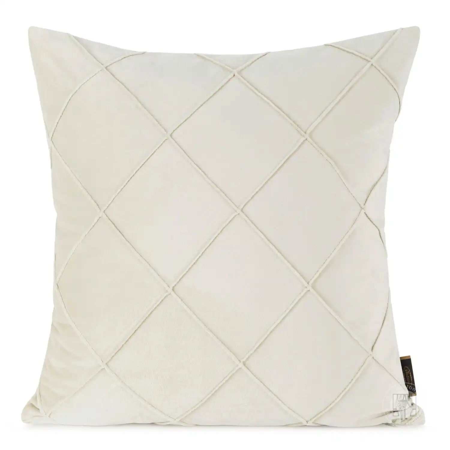 Elegantná krémová obliečka na vankúš vyrobená zo zamatovej látky. Obliečka je zdobená elegantným prešitím. Geometrické tvary dodávajú obliečke na vankúš moderný charakter, ktorý dokonale dopĺňa zamatovú textúru látky.